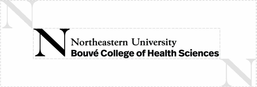 All University Wordmarks can be sized down until the height of the N in Northeastern is 12 pixels high in digital environments or 1/8 of an inch in print environments.